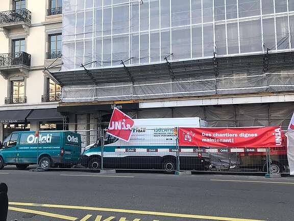 Le constat fait par les secrétaires syndicaux d’Unia sur un chantier du centre-ville relève de graves manquements de la direction des travaux. L’action publique de ce jour vise à obtenir des mesures immédiates et à éviter que des ouvriers travaillent sur des chantiers dans des situations d’hygiène et de sécurité indignes.