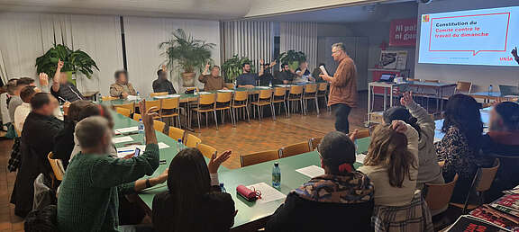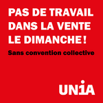 Nous, salariées et salariés de la vente et des branches connexes (pharmacies, sécurité, boulangeries, coiffure, transports et logistique, nettoyage), réunis en assemblée aujourd’hui, exprimons notre opposition ferme aux projets de déréglementation du travail dominical : 1) l’introduction de deux dimanches ou plus d’ouverture au niveau cantonal, et 2) les velléités de la droite au niveau national d’ouvrir les commerces jusqu’à douze dimanches par année.